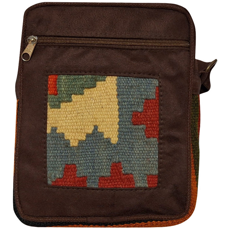این کیف زیبا ترکیبی از گلیم دستباف و پارچه نفیس و مستحکم نبوک می باشد . پهنای این اثر نیز از جنس گلیم دستباف است .پشت و بند این کیف رو دوشی که قابلیت کوتاه و بلند شدن را دارد از جنس پارچه نبوک می باشد .