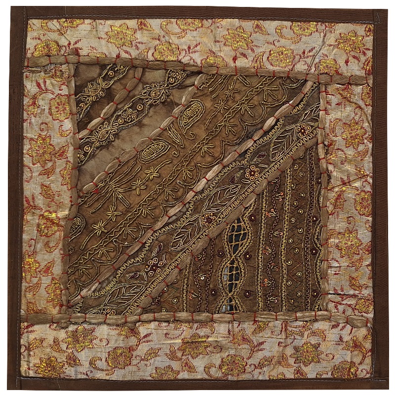 سایر توضیحات: آستر پشت این رومیزی دارای زیپ می باشد ولی این اثر به هیچ وجه قابلیت پر شدن و استفاده برای کوسن را ندارد چون سرمه های آن به لباس و بدن گیر کرده و مثل فنر کشیده می شود که این امر باعث خراب شدن و از بین رفتن بسیار سریع می گردد .