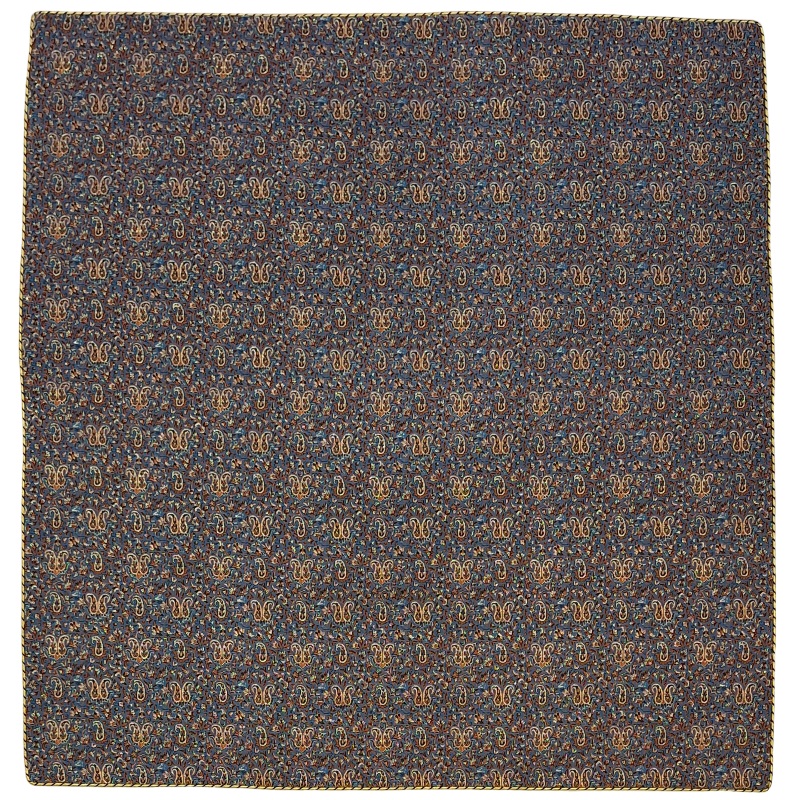 رومیزی مربع ترمه نفیس ابریشم کد TRM230 رنگ آبی آستر آبی لبه مغزی دوزی