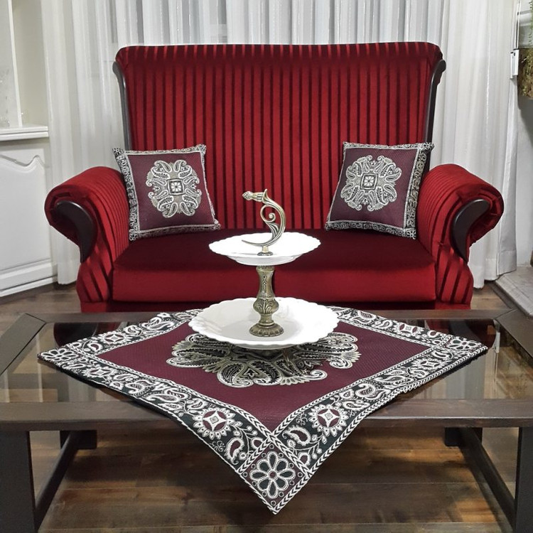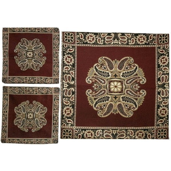 یک عدد رومیزی زیپ دار مربع 70x70 و یک جفت کاور کوسن 36x36