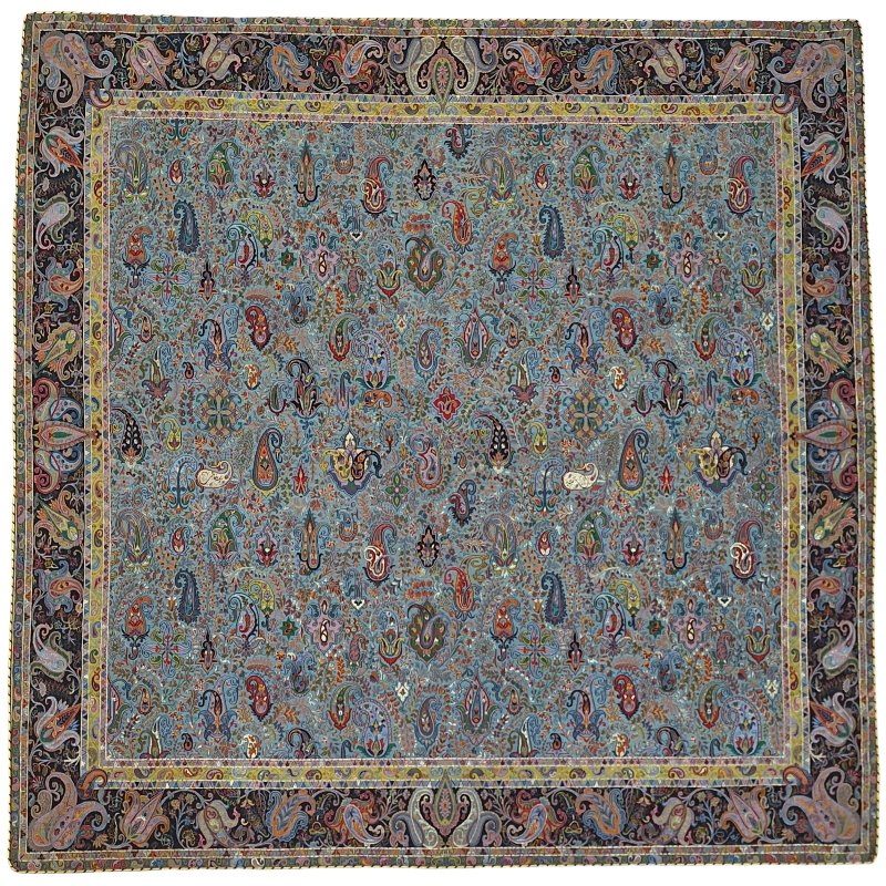 رومیزی مربع ترمه نفیس ابریشم کد TRM۲۷۸ رنگ سبزآبی آستر آبی لبه مغزی دوزی