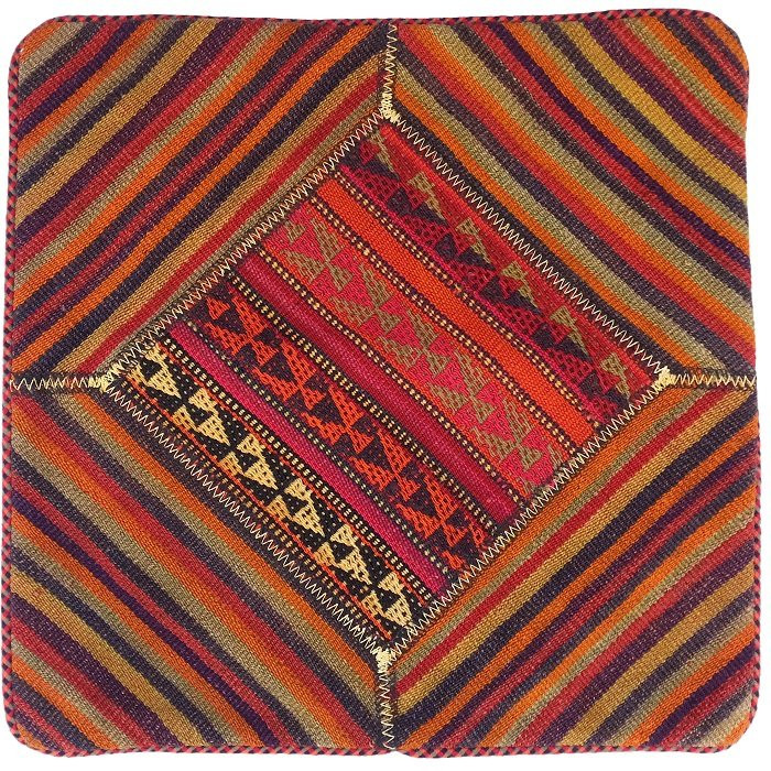 سایر توضیحات : کوسن ترکیبی جاجیم و گلیم دستباف ، پشت کوسن پارچه ضخیم طرح جاجیم ، دارای زیپ مخفی بزرگ ، شستشو با شامپو فرش و توسط دست .