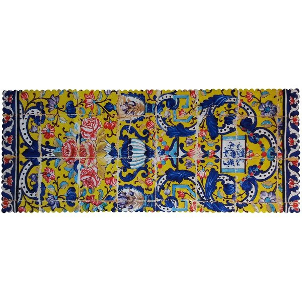 رومیزی مستطیل مخمل کوبیده طرح کاشی کد MAKHMOS32