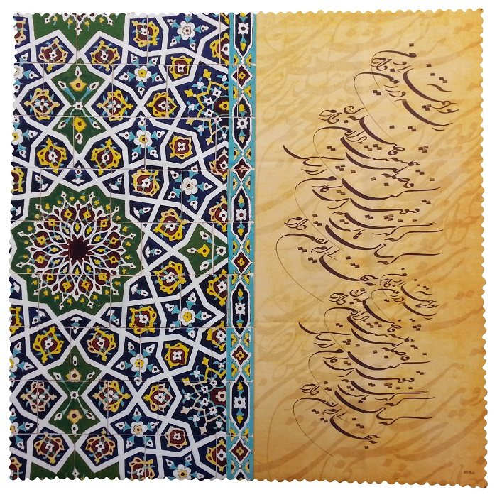 رومیزی مربع مخمل کوبیده طرح شعر و کاشی کد MAKHMOR15