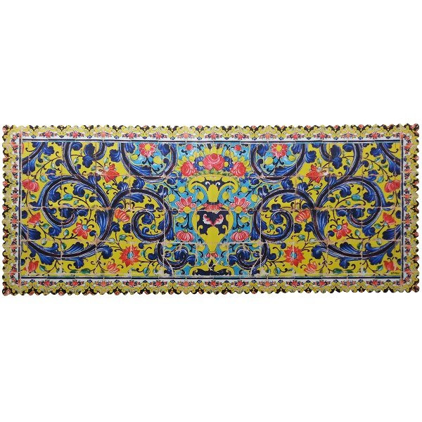این رومیزی با طرح اصیل ایرانی نقش بسیار مهمی در زیبائی بصری دکوراسیون محیط زندگی ما دارد . این روزها که میزها از زیبایی خاص برخوردار هستند نیاز به رومیزی هائی که کل سطح میز را بپوشانند احساس نمی شود . این اثر زیبا علاوه بر اینکه تمامی سطح میز را پنهان نمی کند بلکه جلوه آن را بیش از پیش به نمایش می گذارد . استفاده از مخمل درجه یک باعث شده تا نیازی به آستر برای محصول نباشد و کیفیت نقش و رنگ اثر بسیار بالا باشد که این امر سبب زیبائی دو چندان آن شده است .
