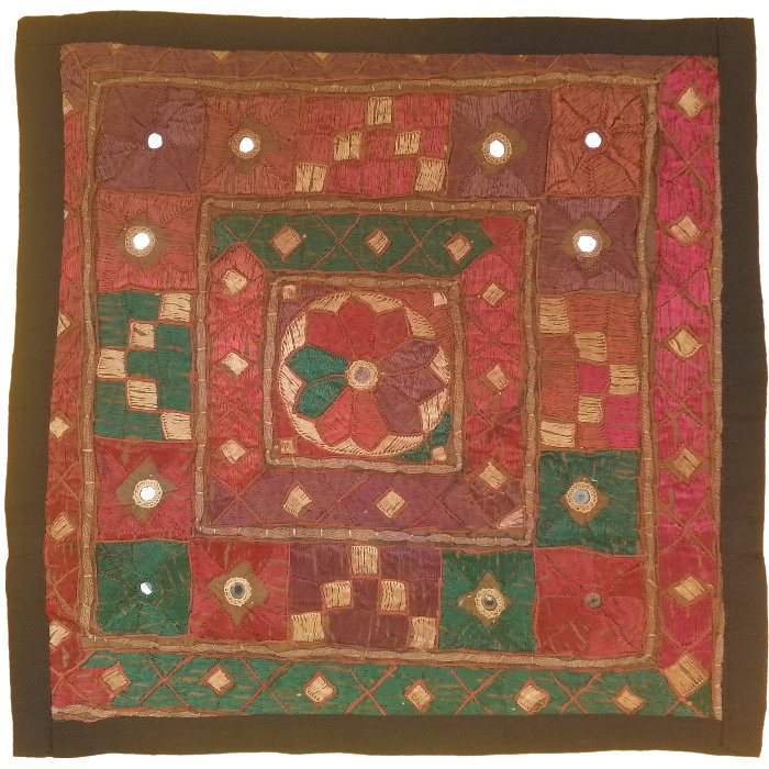 سایر توضیحات: آستر پشت این وسط میزی دارای زیپ می باشد ولی به علت حساس بودن و دست دوز بودن تمام سطح پارچه که با نخ پنبه یک لا سوزن دوزی شده ، به هیچ وجه مناسب استفاده به عنوان کوسن نمی باشد .